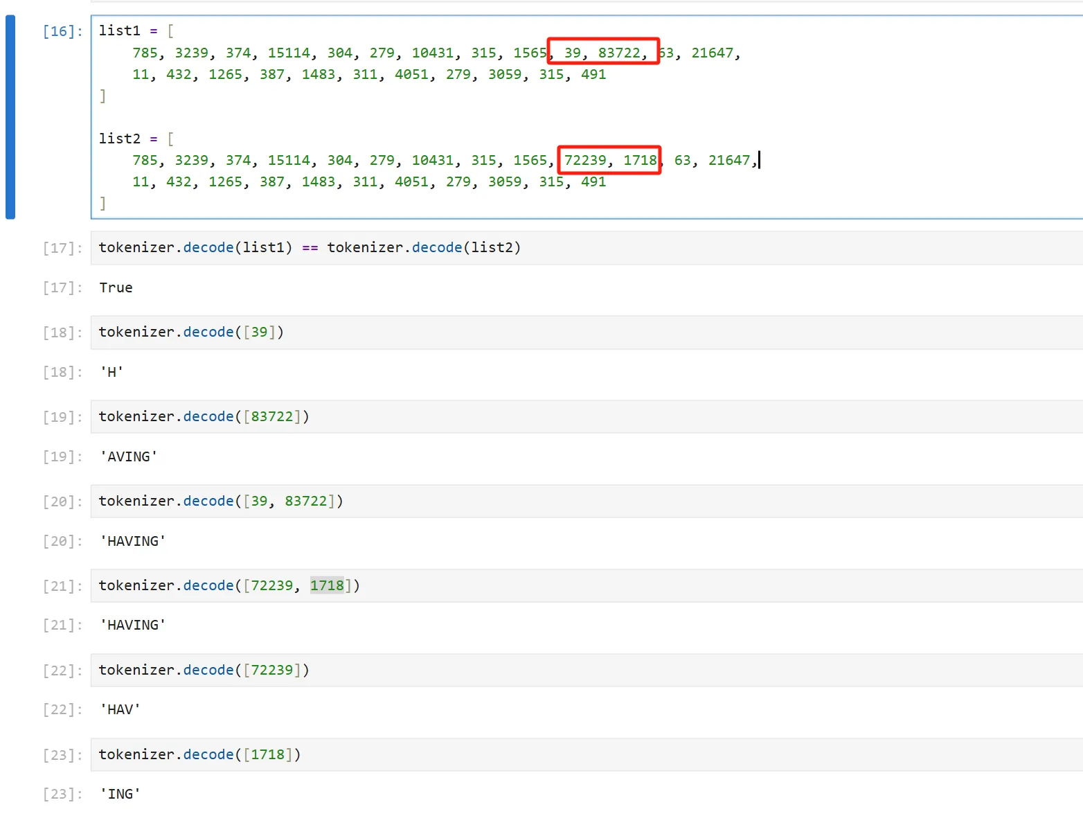 - Non-unique “HAVING”. In practice this shows up constantly: a word might be produced during generation as two tokens (e.g.,