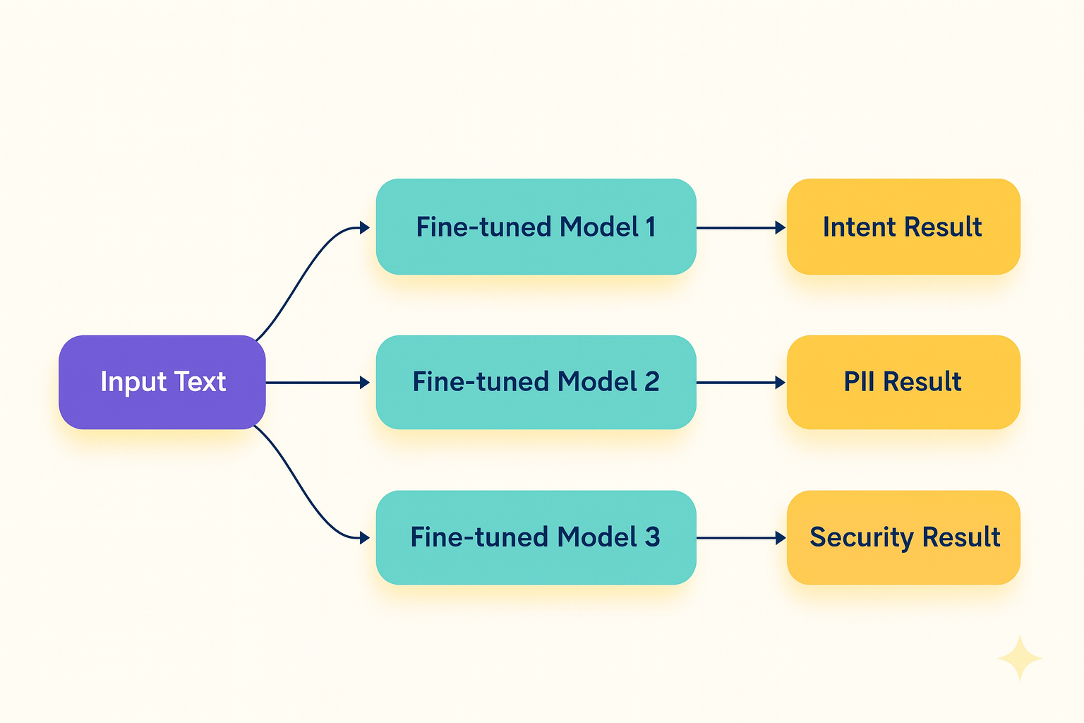 LoRA addresses a fundamental inefficiency in the previous system. When a classification system needs to determine intent, detect PII, and check for security issues, the naive approach runs three separate fine-tuned models: